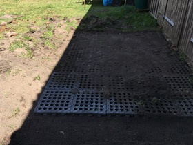 Verlegung von Paddock-Platten vor den Pferdeställen